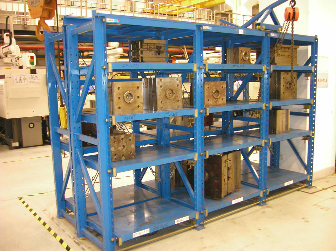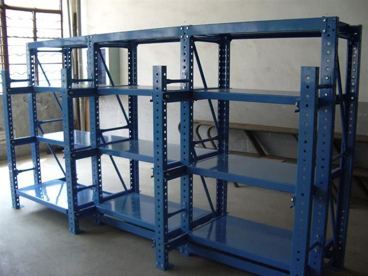 Os estantes de armazenamento de moldes são utilizados principalmente para armazenar todos os tipos de moldes, que podem ser montados com um carrinho móvel manual no topo, de modo a levar e recuperar facilmente as mercadorias.O rack lateral foi equipado com trilho roda de marcha lenta na parte inferior e o painel de prateleira deslizante poderia ser livremente puxado para fora durante o carregamento. O rack de deslizamento do tipo médio poderia carregar menos de 800KG / gaveta, e o rack de deslizamento do tipo pesado poderia carregar mais de 1000 KG / gaveta.que seja conveniente para o transporte, e a montagem é simples e rápida e este rack possui melhor dispositivo de proteção de segurança.