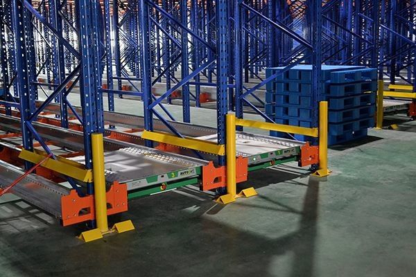 O sistema de prateleiras de transporte, estruturado com paletes e vigas são mais amplamente utilizados.Paletes de aço e caixas de armazenamento.