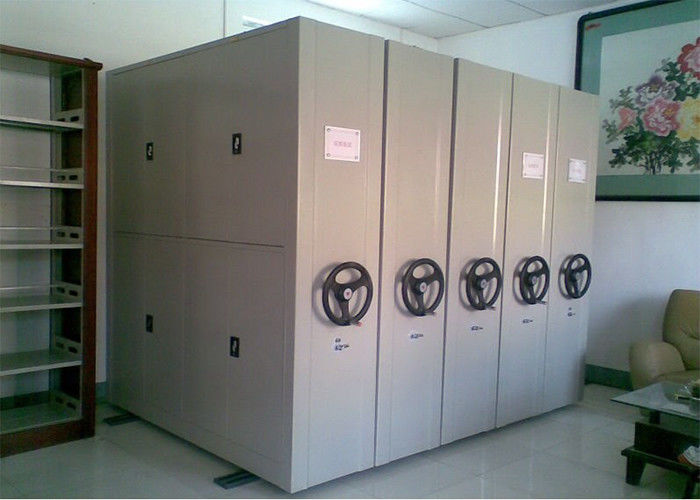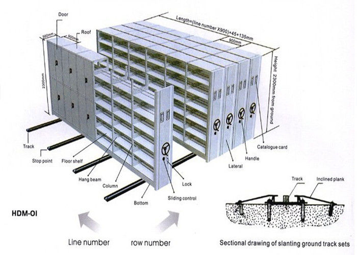 É amplamente utilizado em escritórios para armazenamento de arquivos e é projetado para ser facilmente reubicado sem fixação no chão.Ele se move ao longo de trilhas do chão permitindo que o corredor para ser movido para que as prateleiras necessárias podem ser acessadas, por isso só é necessário um corredor.
