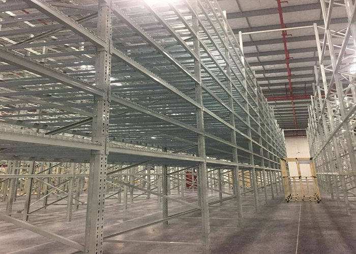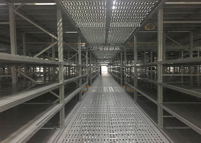 Sistemas de prateleiras de aço mezzanine suportados por racks cinzentos para armazéns enormes